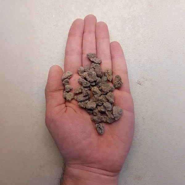 Po zanurzeniu w wodzie lawa nabiera głębszych odcieni, a jej nieregularna powierzchnia nadaje aranżacji naturalny wygląd. Drobna frakcja sprawdzi się jako uzupełnienie podłoża aktywnego, zapewniając dobrą cyrkulację wody i stabilizując rośliny, natomiast większe fragmenty mogą pełnić funkcję dekoracyjną. Dzięki swojej lekkości lawa jest łatwa do układania i nie obciąża dna zbiornika.