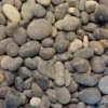 Ciemny, naturalny żwir o bardzo gładkich, zaokrąglonych ziarnach i grubszym uziarnieniu.
