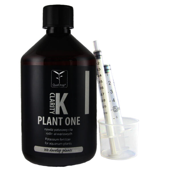 Każde akwarium różni się gęstością nasadzeń, gatunkami roślin, mocą oświetlenia czy poziomami innych makroelementów. Dlatego optymalne dawkowanie K Clarity One powinno być dostosowane do konkretnego zbiornika biorąc pod uwagę stężenia innych pierwiastków takich jak azot (NO3), fosfor (PO4) i CO₂, co wspiera zbalansowany i prawidłowy rozwój roślin.