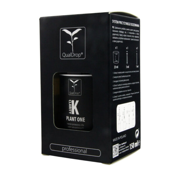 Qualdrop K Clarity One dostarcza potas — pierwiastek kluczowy dla właściwego metabolizmu i stabilnego wzrostu roślin akwariowych. Dzięki specjalnie opracowanej formule potas jest dostępny dla roślin niemal natychmiast, co pozwala na szybkie przyswajalnie go przez rośliny.
