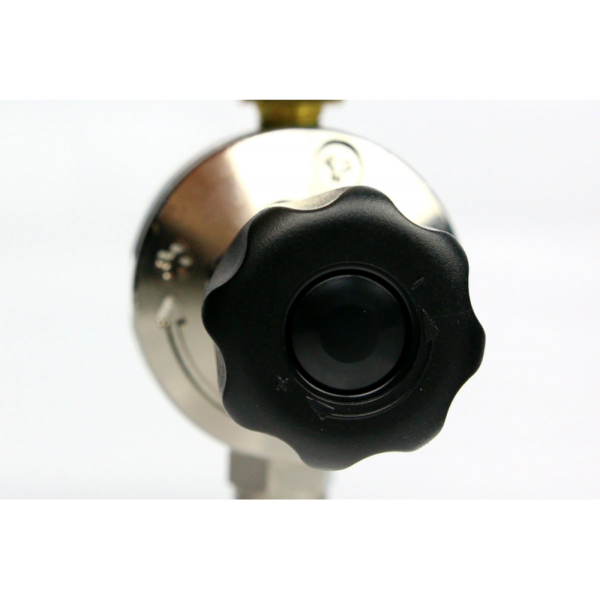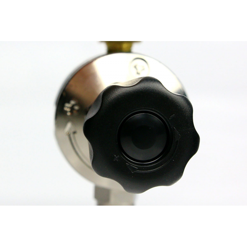 Regulacja odbywa się za pomocą wygodnego, czarnego zaworu z przodu reduktora – wystarczy go odpowiednio dokręcić lub odkręcić, aby ustawić docelowe ciśnienie w układzie.