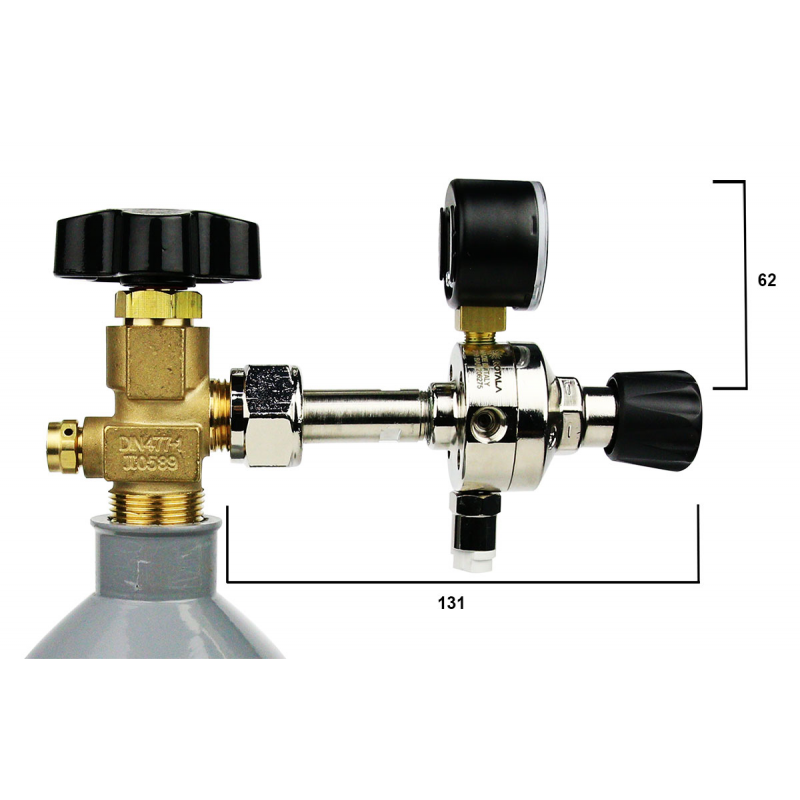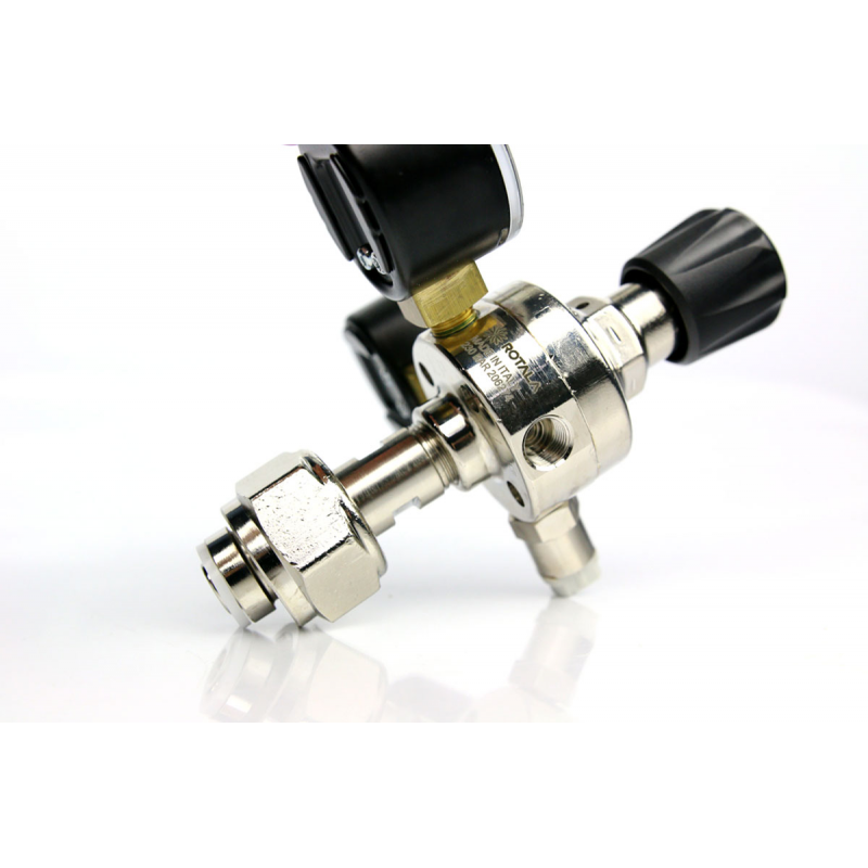Podstawowy element systemu CO₂ wykonany z mosiądzu – łączy butlę z instalacją Co2 i reguluje przepływ gazu do akwarium. Dla bardziej atrakcyjniejszego wyglądu został pokryty niklem.
